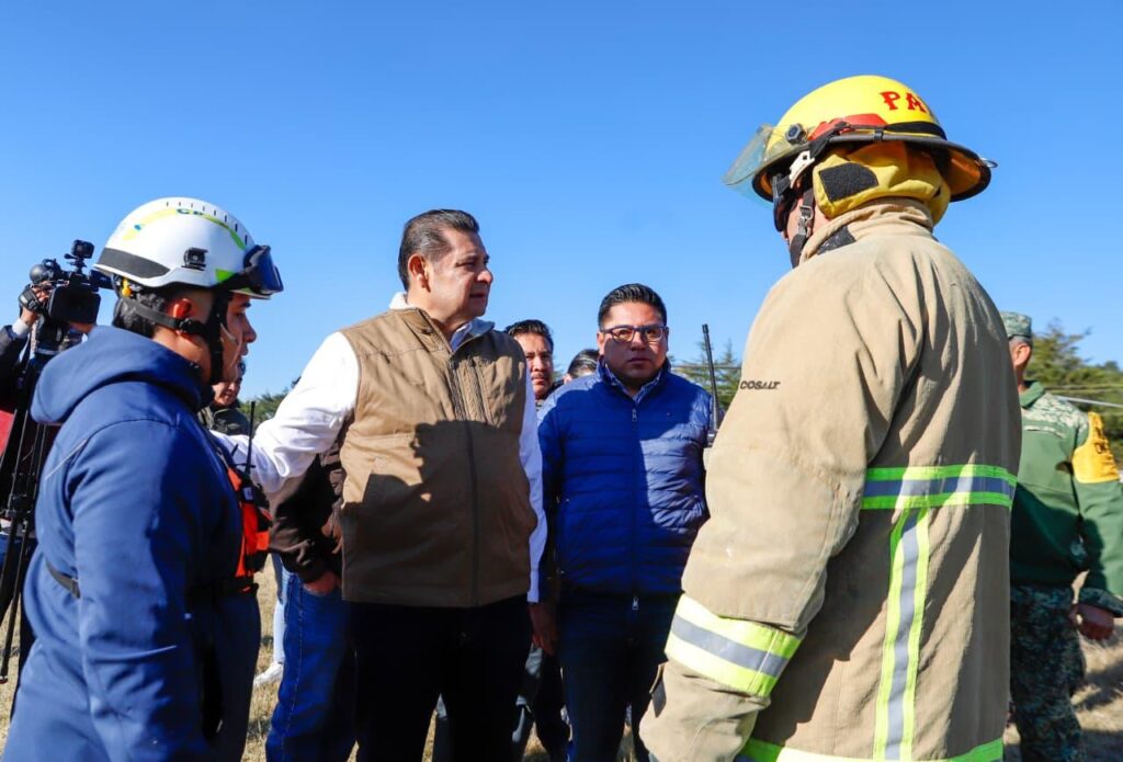 El gobernador de Puebla, Alejandro Armenta, supervisó las labores de combate aéreo del incendio forestal registrado en el municipio de Vicente Guerrero, en la región de la Sierra Negra, donde brigadas trabajan de manera coordinada para contener el avance del fuego.